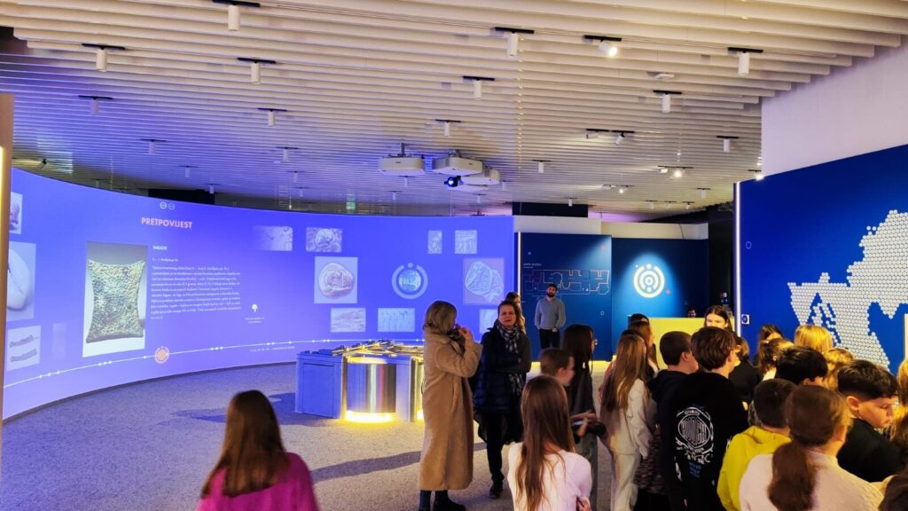 U utorak, 25.studenog učenici petih razreda u pratnji svojih razrednica posjetili su Arheološki muzej i Muzej novca – Moneterru u centru grada. Veselje zbog izvanučioničke nastave nije mogla pokvariti ni uporna kiša koja je baš taj dan odlučila neumoljivo padati. U Arheološkom muzeju učenici su razgledali Egipatsku zbirku, naučili ponešto o običajima i životu starih Egipćana, a po završetku razgledavanja u pratnji kustosice, koja je strpljivo odgovarala na sva njihova pitanja, učenici su se okušali u pisanju hijeroglifa i u tome bili vrlo uspješni! Kući su ponijeli plastificirane privjeske sa svojim imenima ispisanim hijeroglifima. U Muzeju novca također je bilo poučno. Naučili su što je to trampa, od kuda potječe naziv “banka”, gdje i zašto se prvo pojavio novac i od čega se izrađivao, od čega se izrađuju novčanice eura, a od čega, primjerice, australski ili kanadski dolari. Imali su priliku izraditi novčanice s vlastitim portretom, a naučili su i kako prepoznati lažne novčanice.