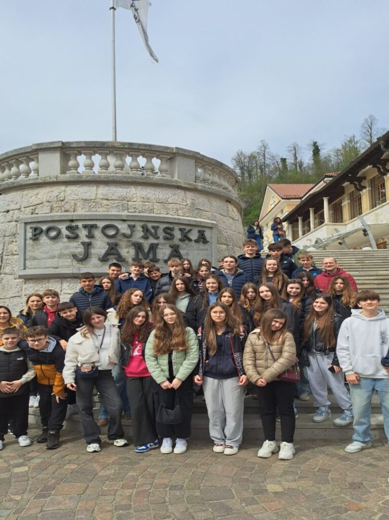 Nakon toga uslijedio je posjet Postojnskoj jami, jednoj od najpoznatijih špilja u Europi. Vožnja vlakićem kroz podzemne hodnike bila je nezaboravno iskustvo, a učenici su imali priliku vidjeti raznolike špiljske ukrase poput stalaktita i stalagmita. Posebnu pažnju privukla je čovječja ribica, endemska životinja koja živi u ovom podzemnom svijetu.